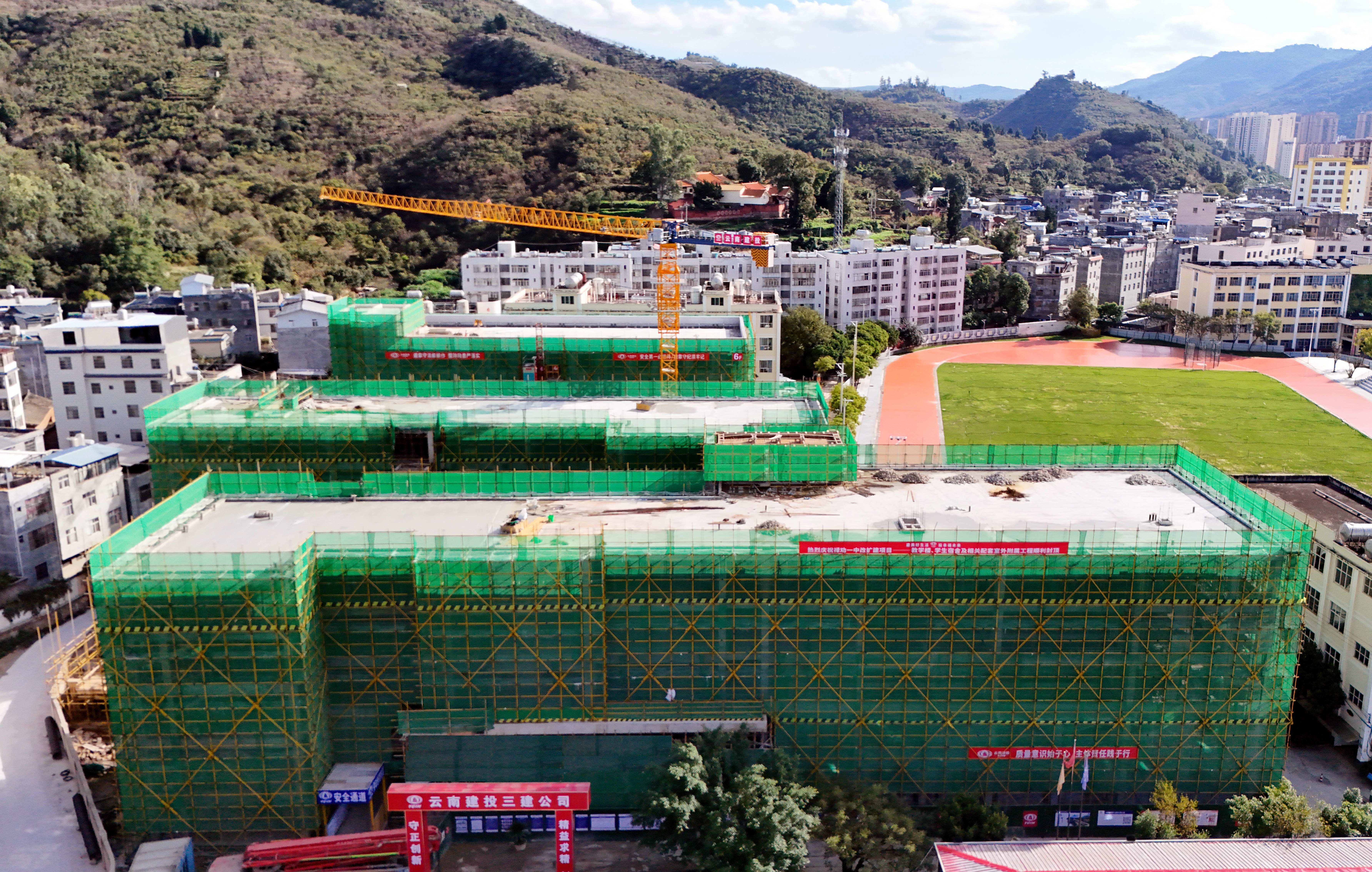 奮戰(zhàn)80天決勝全年度丨祿勸第一中學(xué)改擴(kuò)建項(xiàng)目主體結(jié)構(gòu)全面封頂